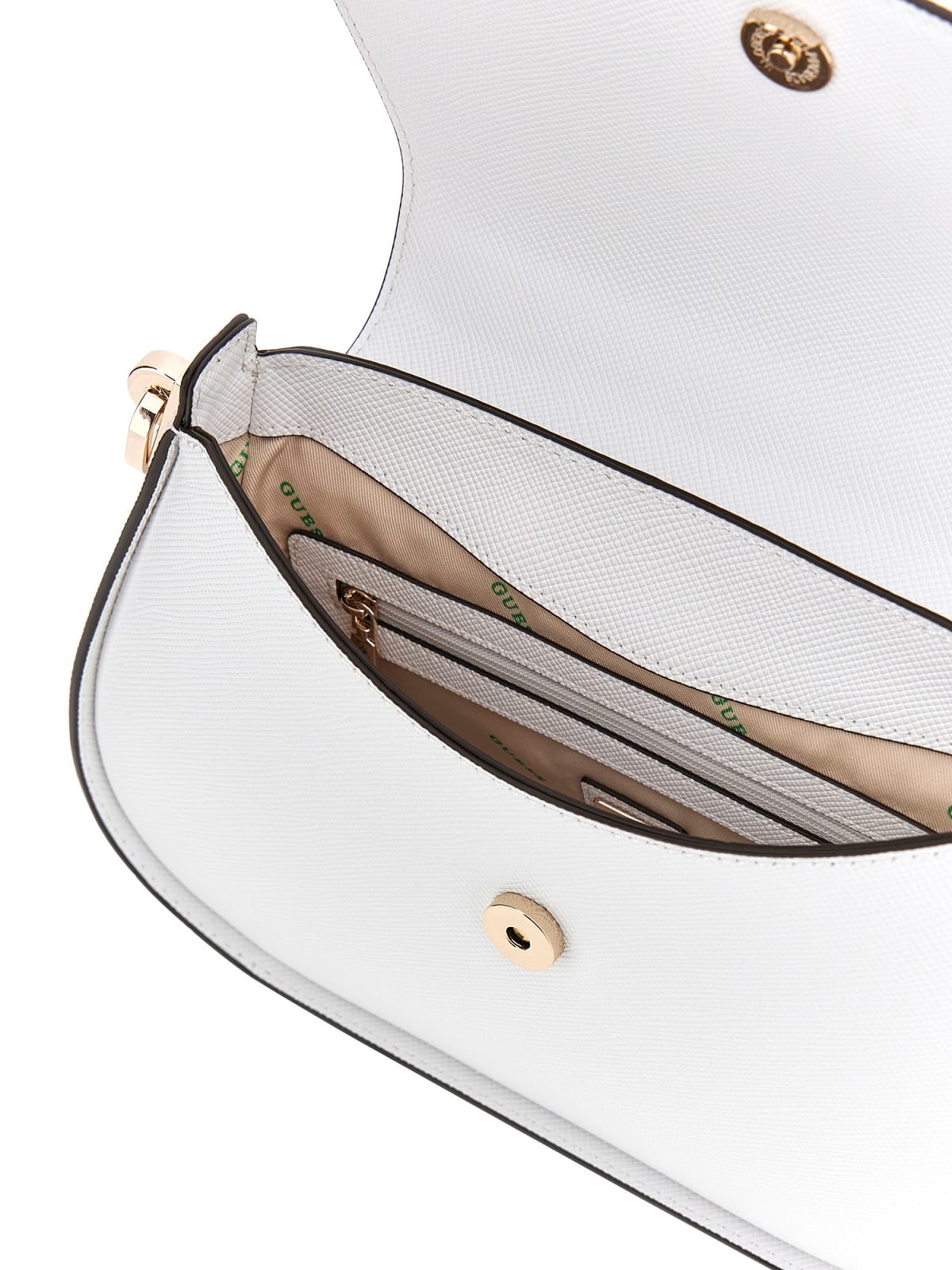La borsa è realizzata in poliuretano effetto martellato con logo sul davanti..Presenta una chiusura con bottone a pressione, manico superiore, tracolla regolabile e rimovibile.L'interno è foderato con tasca a parete con zip.Materiale: 100% poliuretanoFondo: Cm 27x19x5Stagione: Primavera estate
