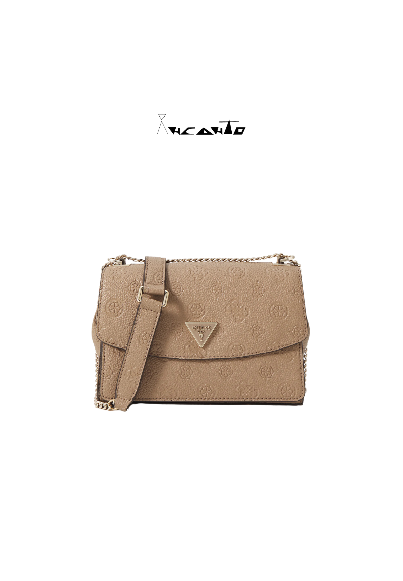 Borsa in similpelle con chiusura conpatta e bottone, metallica in colore oro pallido.