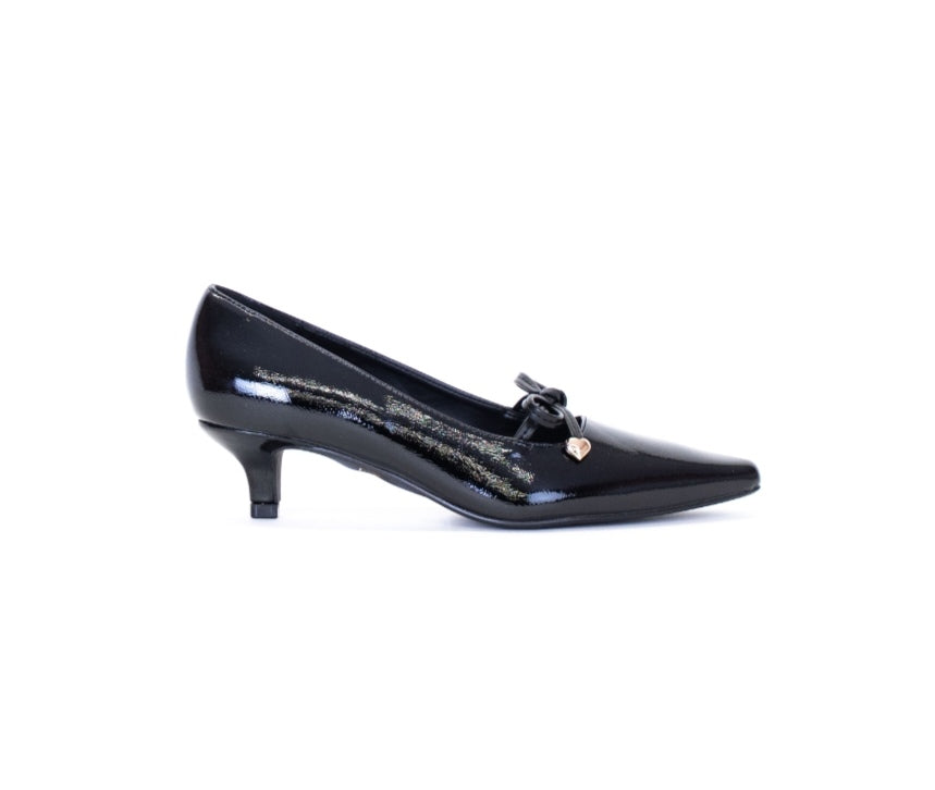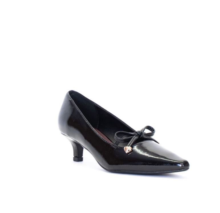Décolleté nero vernice con fiocco. Punta ma con pianta comoda. Tacchetto moda cm3, 5