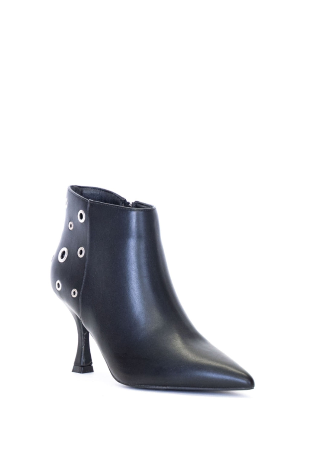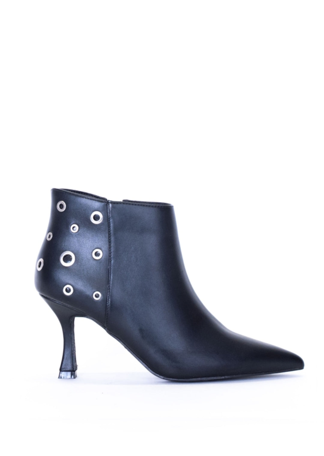 TRONCHETTO DECORATO DA OCCHIELLIMateriale: PELLE SINTETICAColore: NEROPunta: SFILATATipo di tacco: MEDIO-ALTO, SOTTILEDettaglio: DECORATO DA OCCHIELLI DI GRANDEZZE DIVERSE SUL RETROChiusura: ZIPCodice articolo: B25GV112NEP